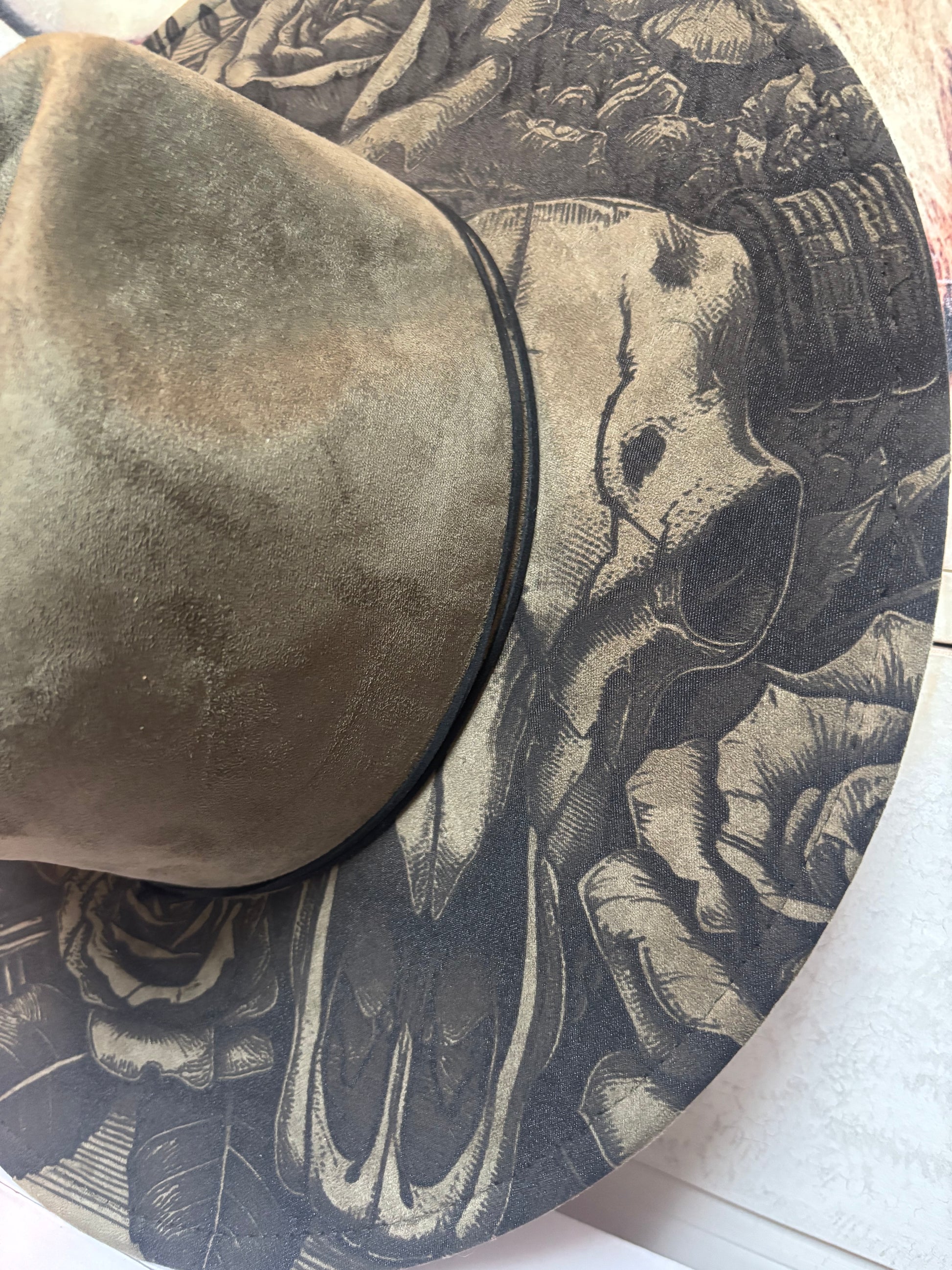 Every Rose Has It’s Thorn( on Olive Green) -wide brim fedora hat