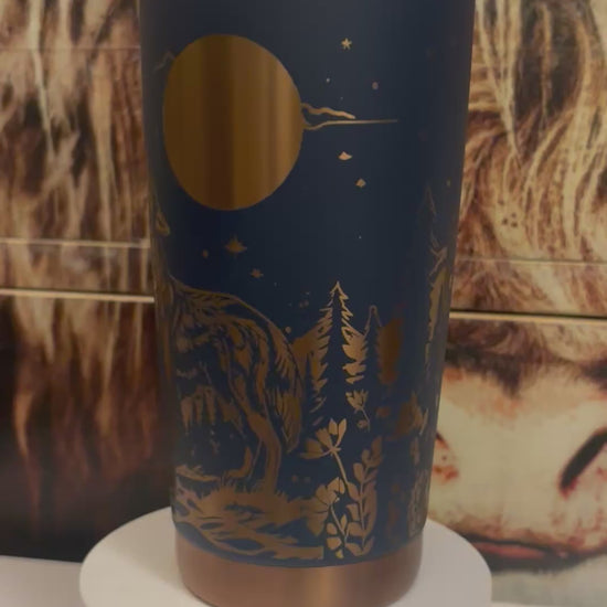 Howling Wolf- (navy/copper)- 20oz Laser Engraved Tumbler